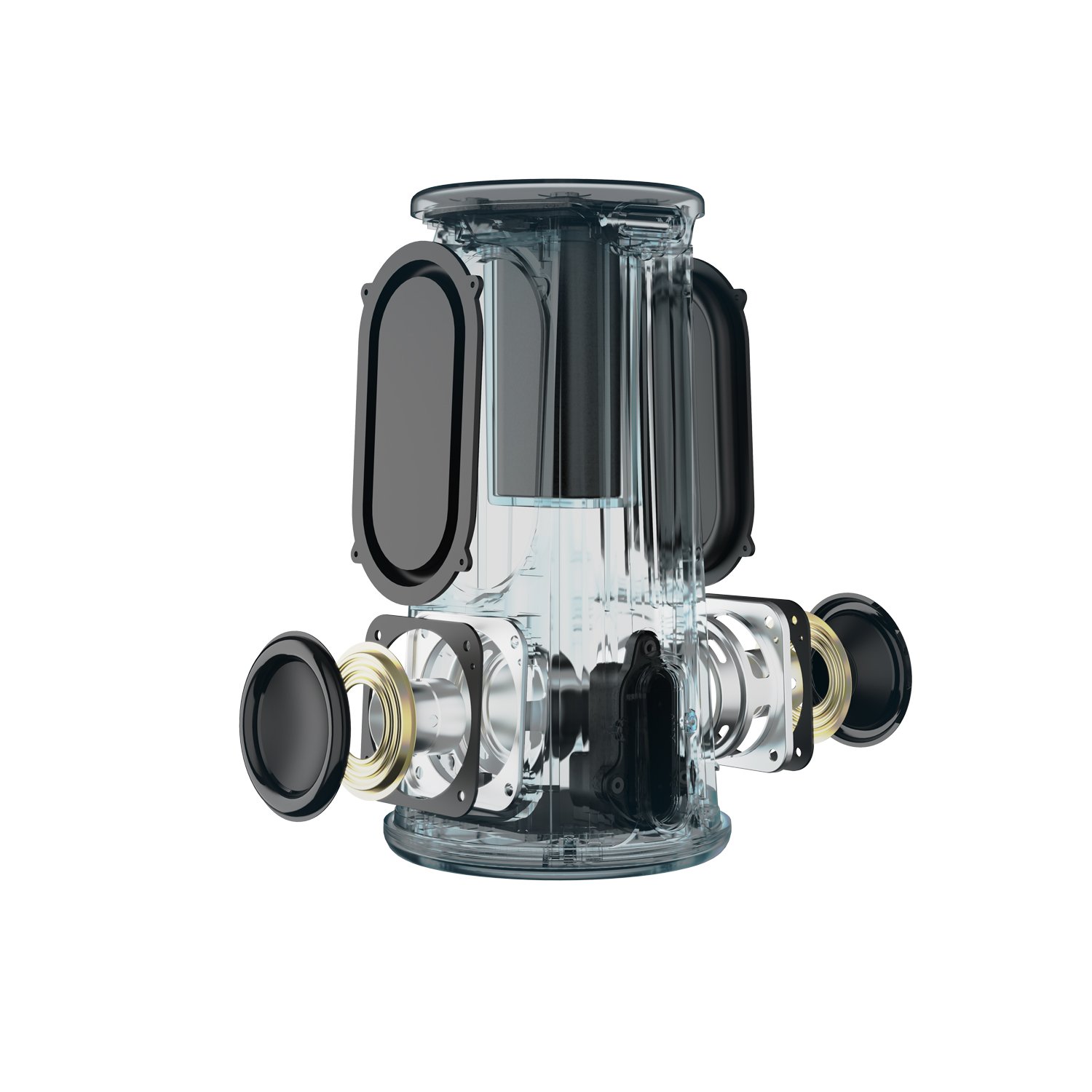 360° სტერეო ხმა და თანამედროვე DSP ტექნოლოგია დინამიკი აღჭურვილია 2 მაღალი სენსიტიურობის დრაივერით, რაც უზრუნველყოფს 360 გრადუსიან ჟღერადობას ცოცხალი სტერეო ეფექტით. მოწინავე DSP (ციფრული აუდიოს სიგნალის დამუშავების) ტექნოლოგიის მეშვეობით მცირდება ხმაური მუსიკის დაკვრისას და მიიღება მკაფიო, ძლიერი და მაღალი ხარისხის ხმა.
